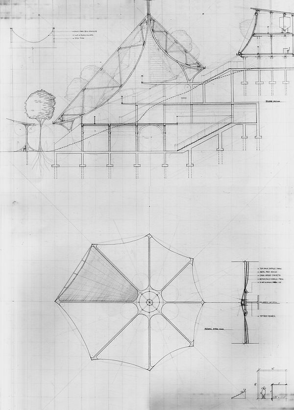 Hand drafting allows for more freedom in the development of conceptual design. Software can stall creative output in the preliminary stage as it requires the user to understand exactly what a line, plane or volume's parameters are. Drawing by hand is freeing in the allowance of human error to shape and provide feedback to a design. Within the development of these drawings, a general direction of tectonics and material was considered prior to drafting but allowed to refine itself naturally as the drawings manifested. These drawings are intentionally left unedited to showcase the strengths of drafting by hand and the beauty of transparent process.